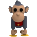 El mono de juguete es una versión modificada del mono. Es un mono de color azul grisáceo que tiene una camisa roja con botones amarillos, platillos en la mano y un platillo en la cola.