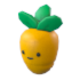 The Carrot Friend Plushie features a bright-yellow carrot with green leaves sprouting from the top. At the bottom of the carrot, a small chunk is missing from the structure.