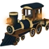The Choo Choo Train is headed by an antique steam-powered locomotive with a navy blue base, a gold trim, and two lanterns attached to it, one in the front and one on the left side. The lanterns glow at night, and steam blows out of the blast-pipe while it moves. The design seems to be based on typical American steam locomotives built in the 19th century (the 1800s). The Choo Choo Train has 5 box-shaped railcars connected to it. Five out of the six available seats are railcars, with the driver's seat being in the locomotive. The railcars have the same color pattern as the locomotive itself, also sharing the same wheels. The railcars of the Choo Choo Train don't resemble any sort of real-life railcar, but they do share a similarity to mine-carts (despite the fact that mine-carts aren't pulled by steam locomotives).