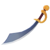 The Cutlass is a gray sword with a lighter gray edge, along with a brown and gold curved handle. The handle is topped with a golden sphere. This pet accessory is worn a pet's back.