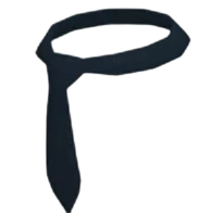 The Head Tie is a long black piece of fabric looped in a circle. It has a knot in its middle, which is connected to a pointed tie.