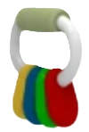 The Key Chew Toy resembles a toy key chain. It has four rounded keys colored red, green, blue, and yellow.