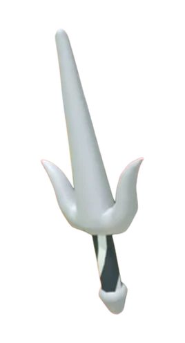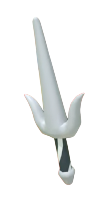 The Sai features a pointed blade with a black and white handle. It has a small pointed bottom.