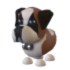The St Bernard features a brown and beige body with four beige feet. It has a black nose and eyes on its face, as well as black, beige, and brown areas. It has a small brown neck accessory that is part of the pet and cannot be removed.