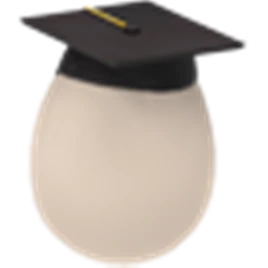 The Starter Egg features a round white egg with a black graduation hat with a golden tassel on the top.