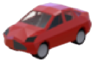 The Vehicle Dealership features a white sleek building with tall orange windows. The entrance consists of a brown and white floor and ceiling, with many trees and a white door located here. The roof features a white large-scaled Convertible.